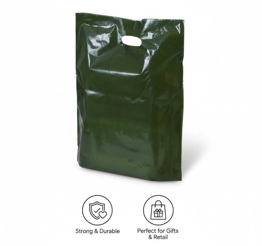Plastic Carrier Bags – Eco Friendly – Harrod Green – Medium 15″ x 18″ + 3″ palletwraps
